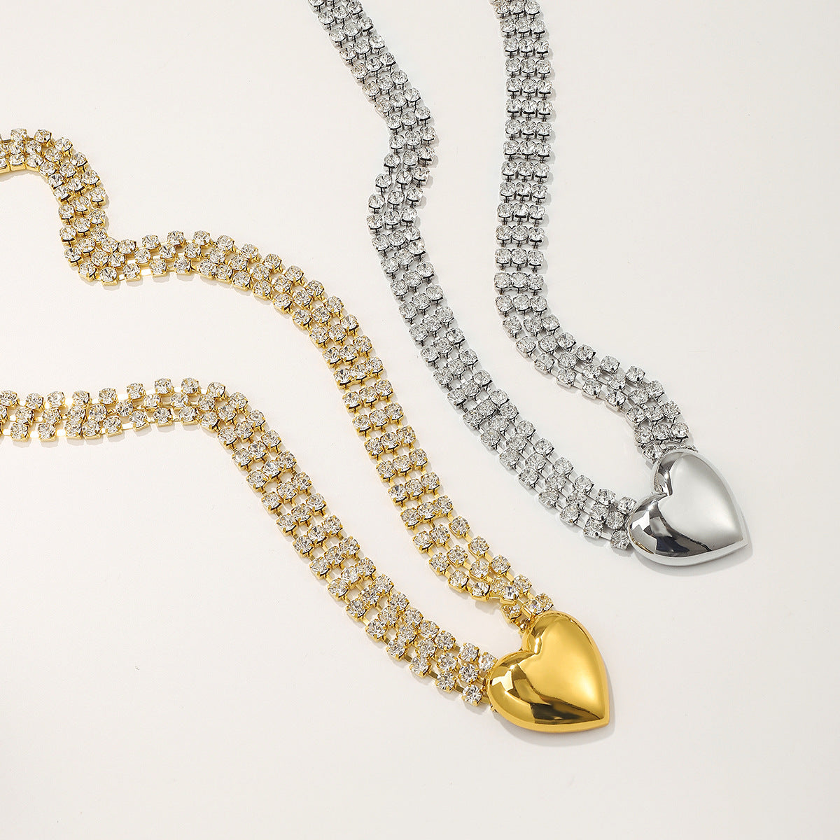 A luxurious double-rowed waist necklace accented with a bold metal heart pendant. Designed to sparkle with every step, the necklace is perfect for showcasing your curves with a touch of romance and elegance. Whether worn over a dress or with a cropped blouse, it's a statement piece for evening wear or special occasions.